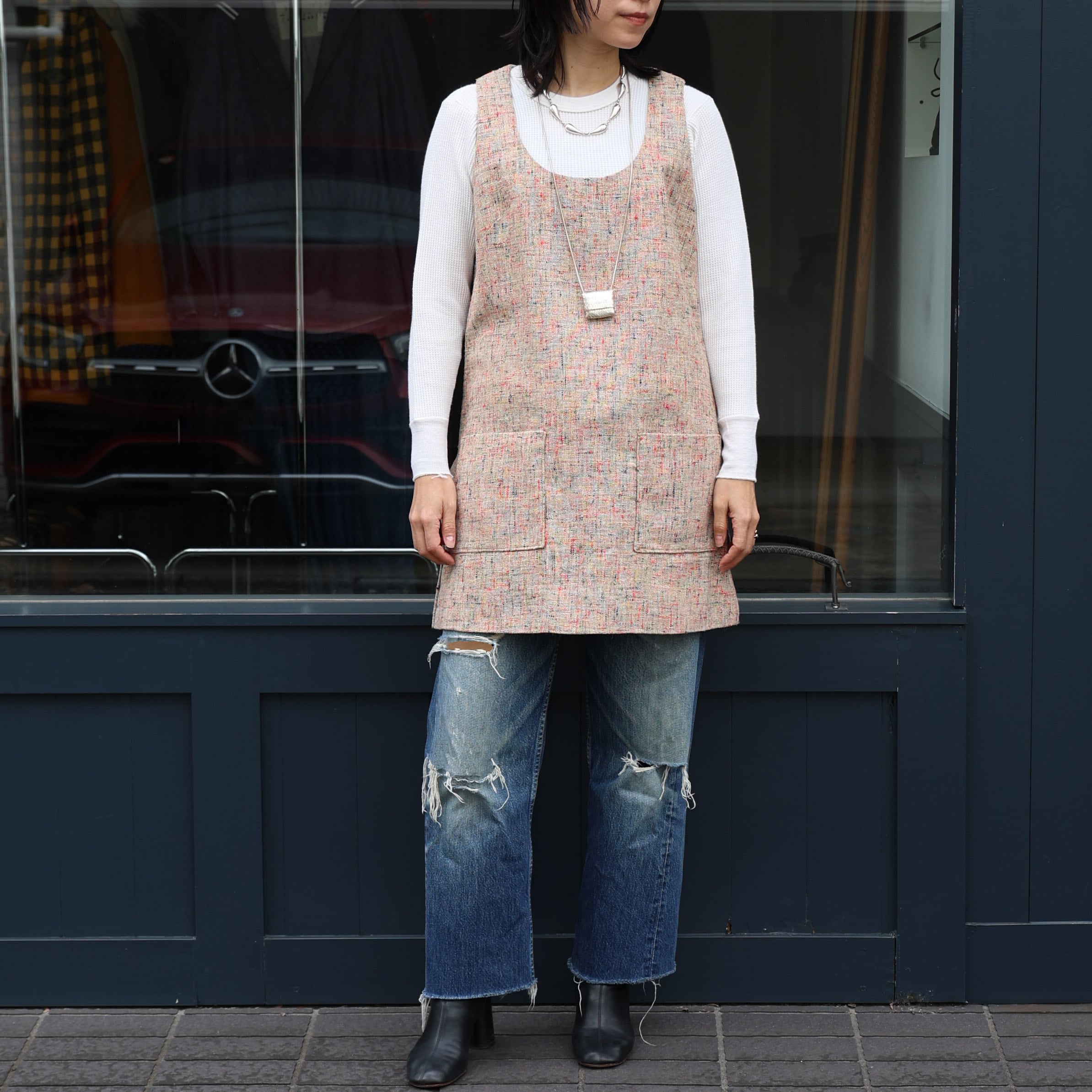一枚で着るとやや丈が短いのですが、レイヤード用として取り入れるとコーディネートの良いアクセントになり、とても気に入っています。