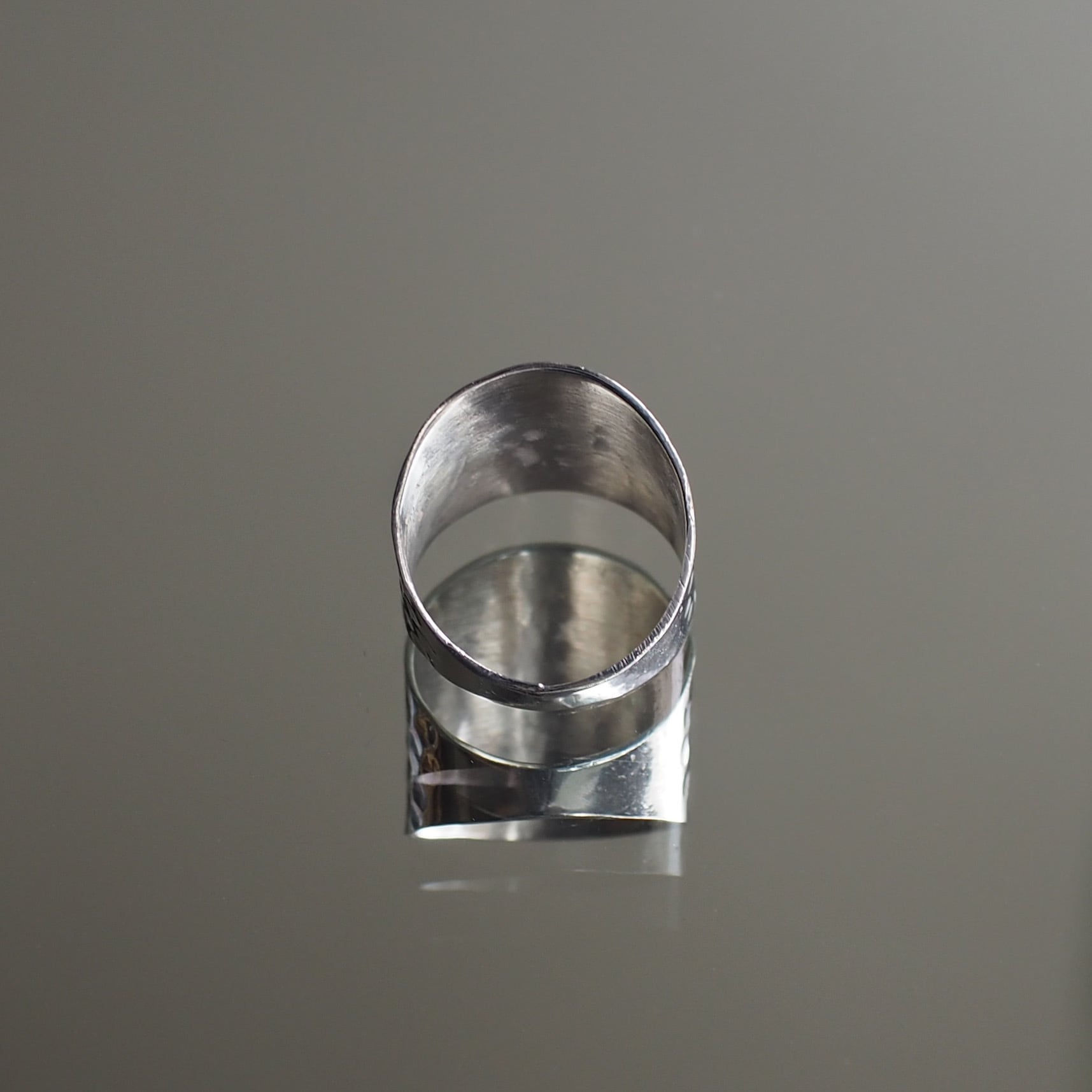 シンプルな叩き込みのシルバーリングで、ライトウェイトながらも一本で存在感があります。