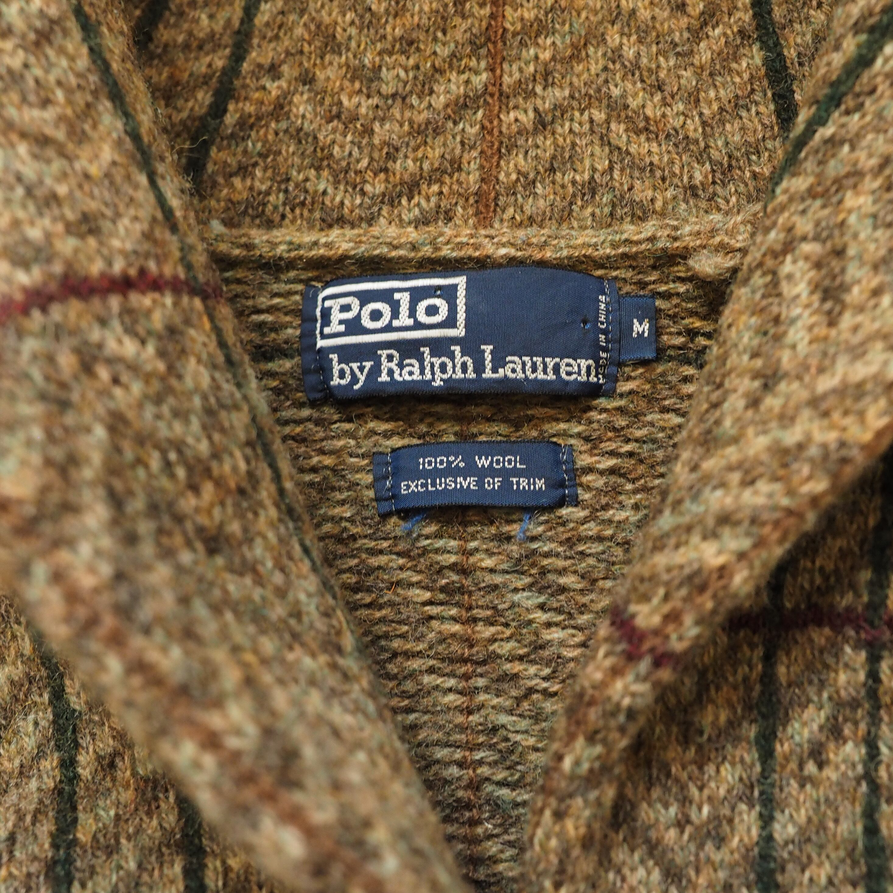 90s Polo by Ralph Lauren Plaid Shawl Collar Knit Jacket