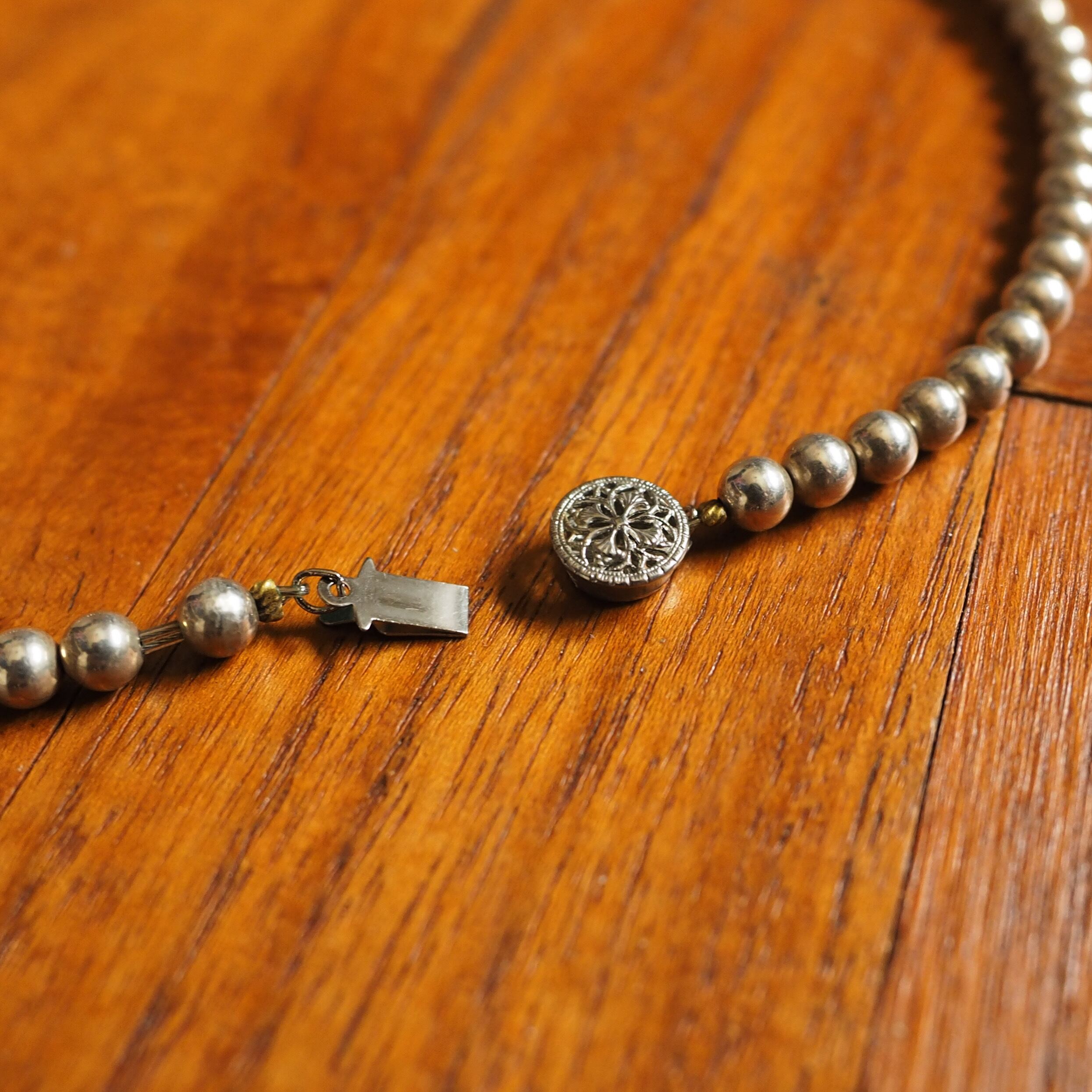 Vintage Mexican Silver Beaded Long Necklace