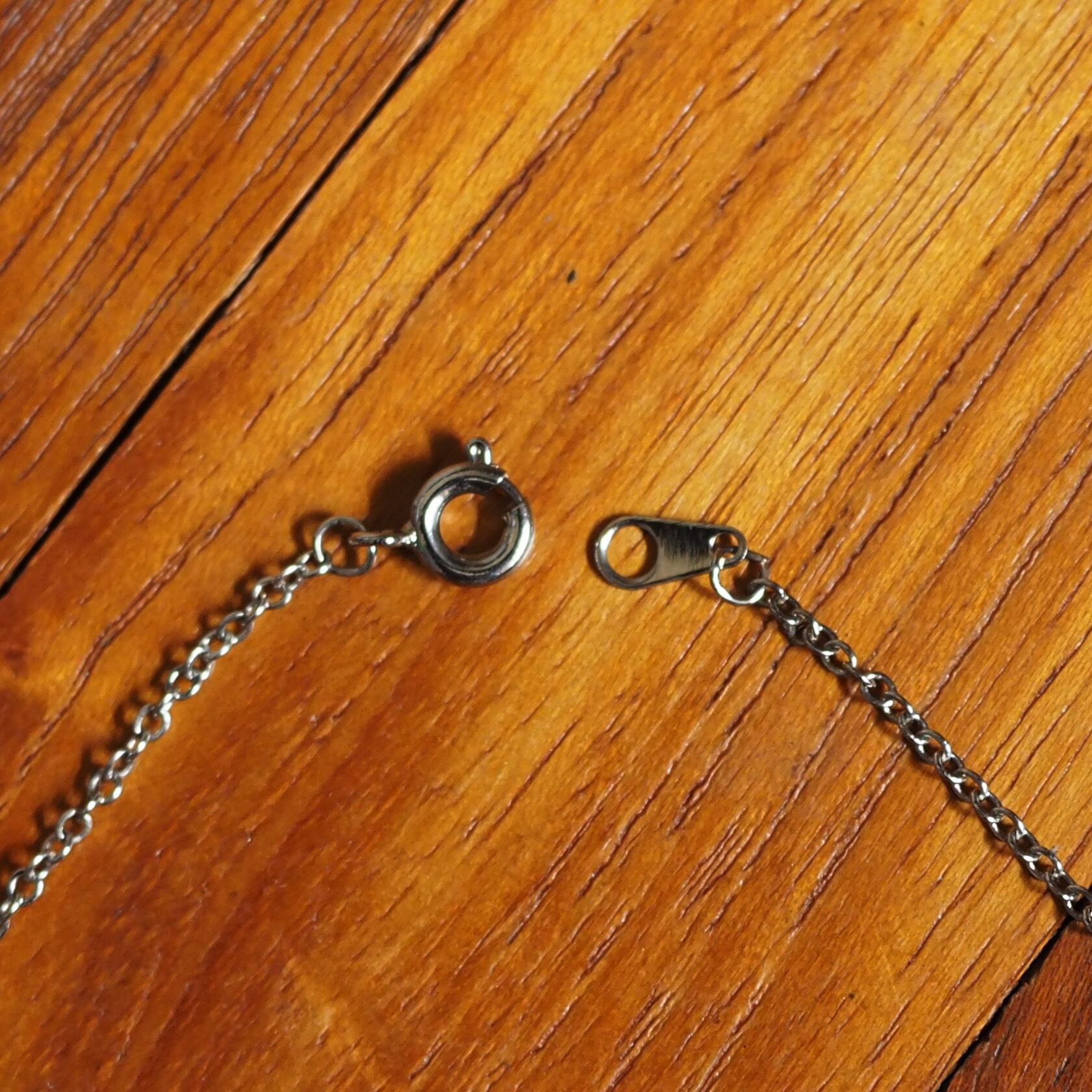 チェーン部分はこのままでも良いと思いますが、シルクやレザー紐に変えても面白いと思います。
